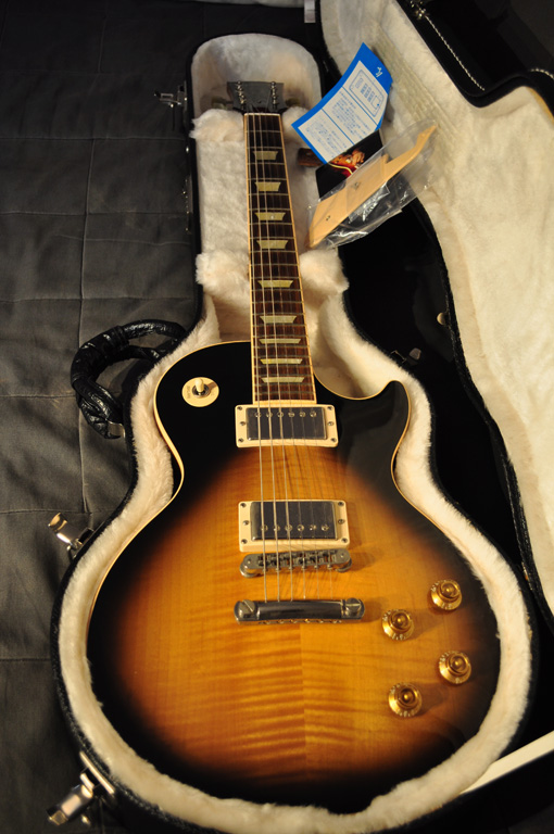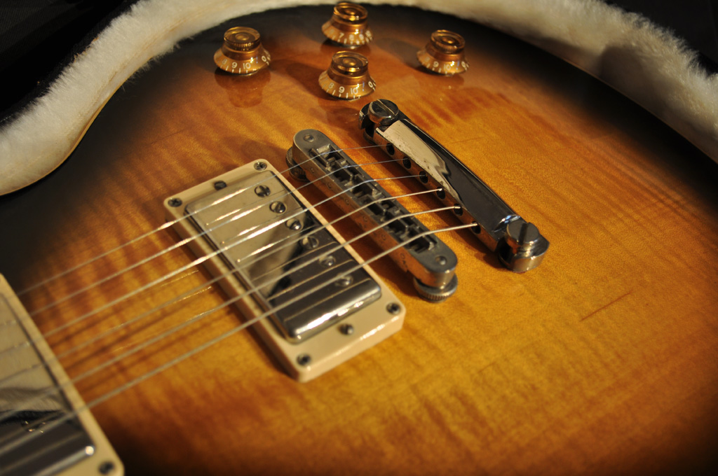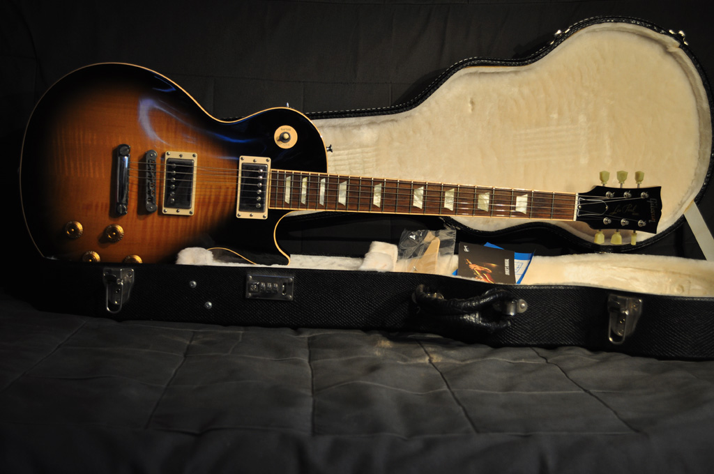 Gibson Les Paul Standard in great colour: Tobacco Burst, from a great period before Gibson started producing these guitars with the useless, overcomplicated electronics, swiss cheese chambering, mini e-tune system etc, and the most important this guitar has a ONE PIECE MAHOGANY body! Usually these are available on the Reissue models and charge you extra for a fantastic looking, one piece mahogany back!