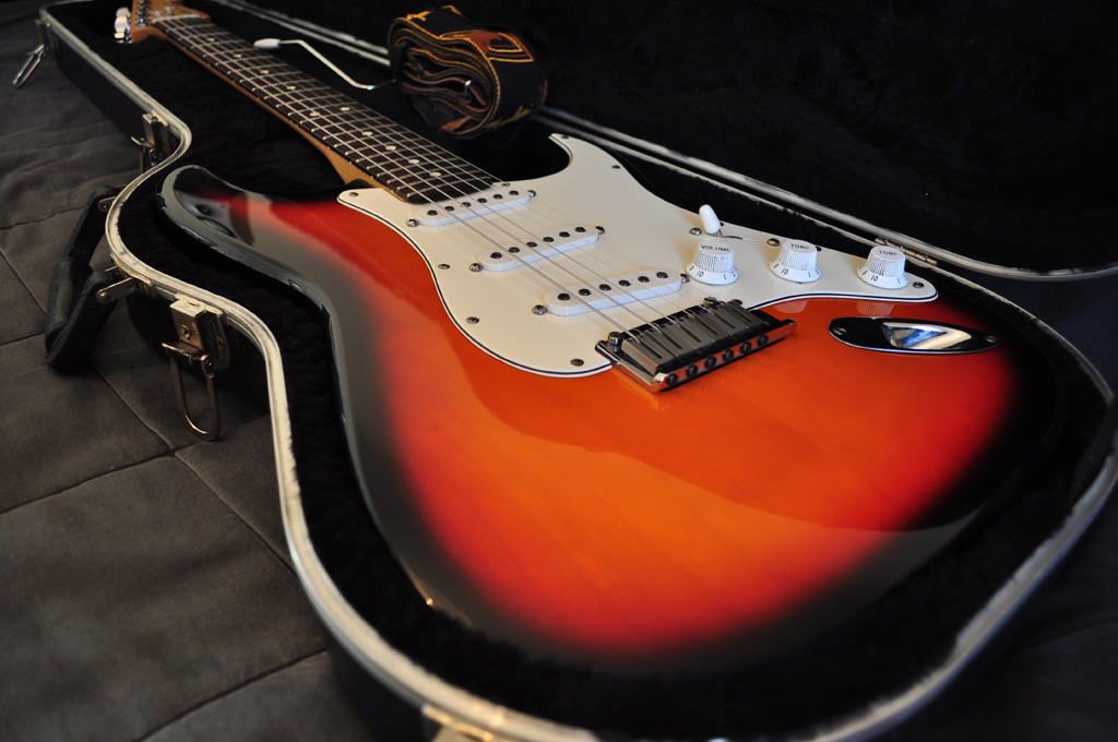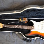 This is a 40th Anniversary Fender American Standard Stratocaster. It’s a really classic guitar. It’s got a nice resonant alder body and a gorgeous neck with a thick, warm sounding rosewood fretboard. It was built in 1994 but it’s in FANTASTIC condition! Just have a look at the pictures! There are no scratches, damages or dents on it (a small tiny mark on the back – shown on one of the pictures…nothing serious), it comes with the never used tremolo arm and the original hard case… It’s already 19 years old! I think it can be a great investment! It’s got the John Mayer tone! Have a look at the video!