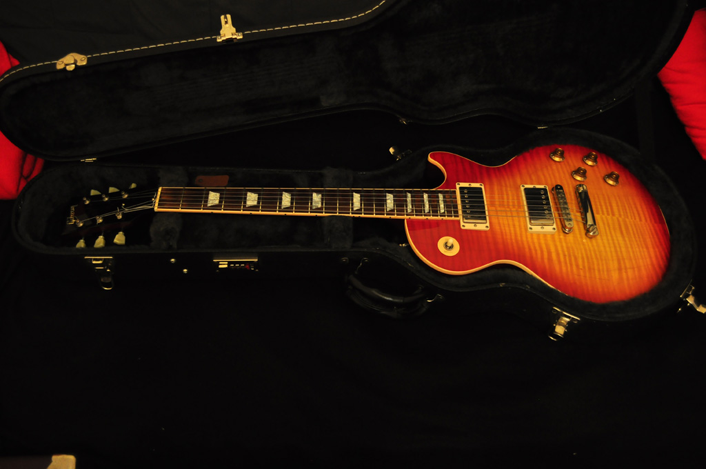 Breathtaking AAA flame maple top (nowadays it would be AAAAA grade and used it on a Custom Shop model ), slim fast 60s neck, Burstbucker pickups as in Joe Bonamassa’s guitars.