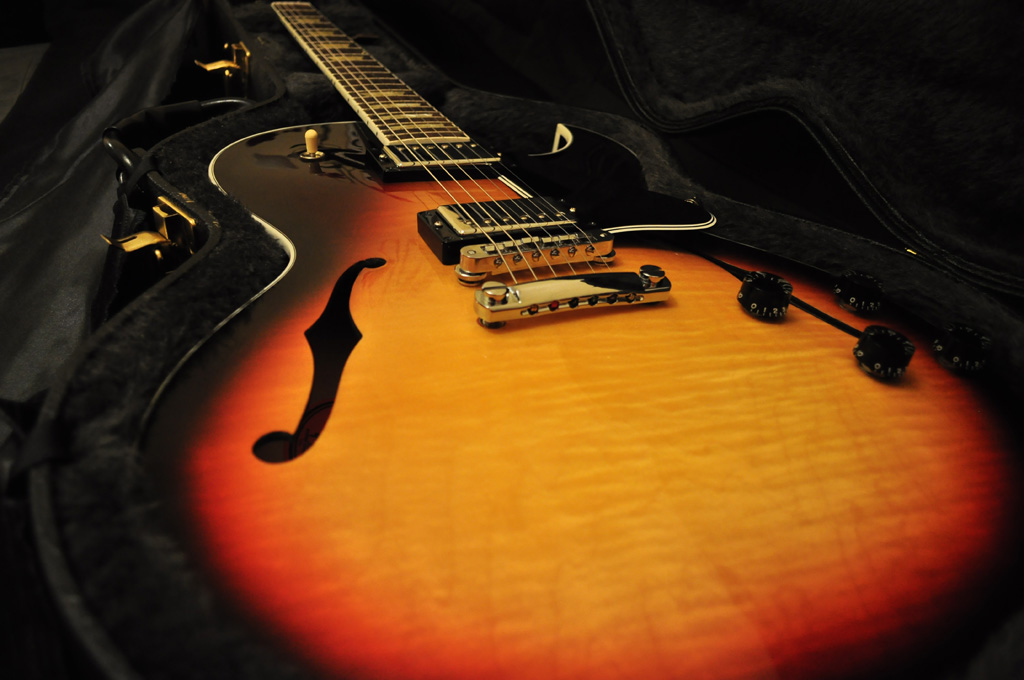 This is one of the most versatile guitars on this planet! An ultimate jazz/blues/rock guitar! It’s a combination of a Les Paul and an ES-335. Fantastic tones, made at Gibson Custom Shop in Memphis, USA. You can drop it in any music situation and it will sound and perform great. This is the model and colour that the guitarist of Kings of Leon uses…this guitar is in completely unused condition. No damages, dents, scratches or anything. It’s got a great Tri-Burst (sunburst) colour, nicely figured maple back and sides. Fantastic pickups, and a 60s style Gibson neck. Custom shop case. It’s all original, the only negative point is that it doesn’t have the case candy (polishing clothes, user manual, registration warranty, inspection tag etc…) with it. But it comes with the original custom shop case which is in new condition too. Just have a look at the well detailed pictures. RRP £1800++ My price is: £1200 Treat yourself with this really special, unique guitar! SOLD