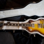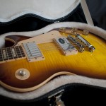 It’s a really breathtaking Gibson Les Paul Traditional in a very rare and amazing colour called Iced Tea Burst. It’s got a very nice, deep flamed maple top and even the mahogany back has some great grain/flames which makes this guitar extra special! This guitar is literally BRAND NEW! This is a non-chambered, 50s style neck Les Paul with a huge, fat and heavy sound!! This is a beast comparing to a modern days ultra chambered, slim neck, light weight Les Paul Standards…This is my favourite from the current Gibson Les Paul range…all my Gibsons (I’ve got a 335 and another Les Paul) are non-chambered, 50s neck versions. I like the much better sustain and much warmer sound of these necks…I love this very rare colour and the nice flame maple top and flamed side. It’s got a perfect low action, setup and spot on intonation from the factory. The rosewood grain on the fretboard looks cool too. It’s a brand new guitar in the original brand new hard case.