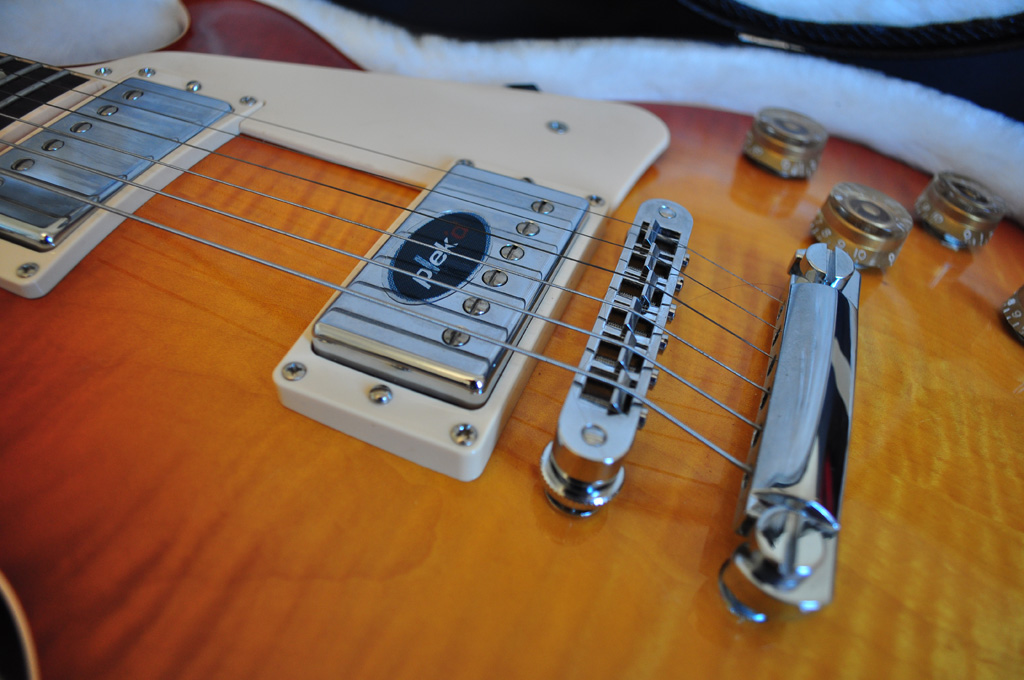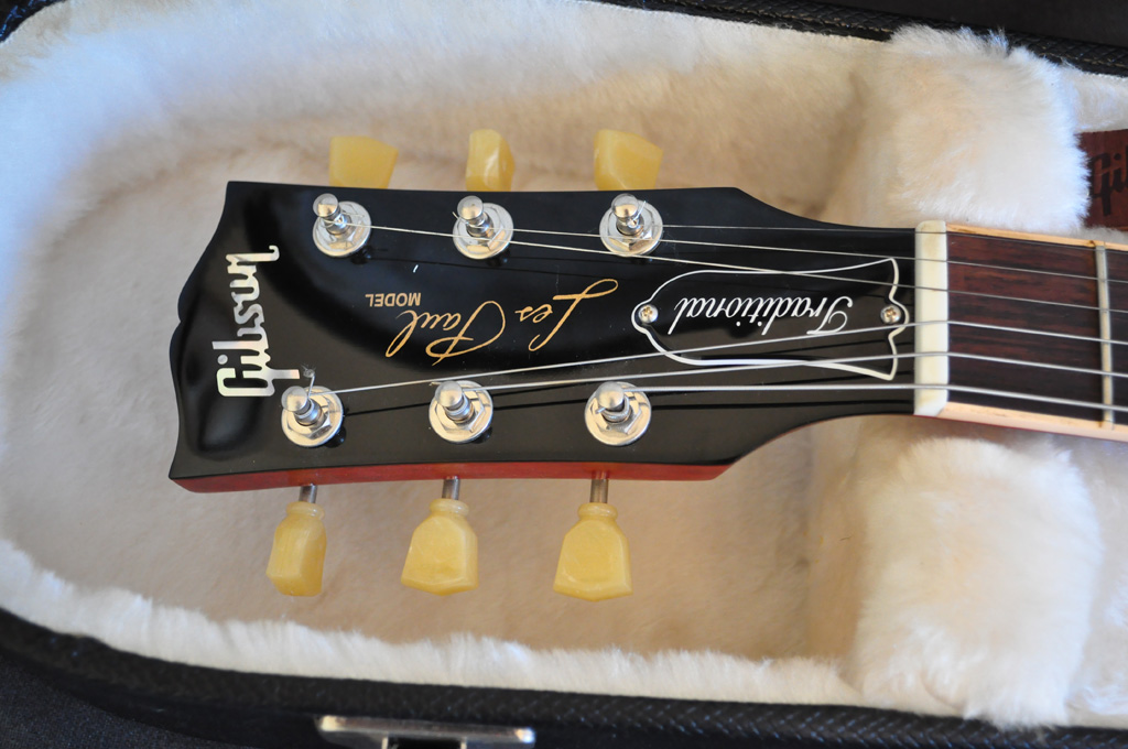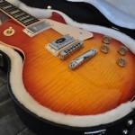It’s a breathtaking Gibson Les Paul Traditional in a unique colour called Iced Tea Burst. It’s got a very nice flame maple top, also the grains on the rosewood fingerboard looks cool on this! This guitar is in BRAND NEW, unused condition! This is a non-chambered, 50s style neck Les Paul with extra fat and warm tone! This is a beast comparing to a modern days ultra chambered, slim neck, light weight Les Paul Standards…This is my favourite from the current Gibson Les Paul range…all my Gibsons (I’ve got a 335 and another Les Paul) are non-chambered, 50s neck versions. I like the much better sustain and much warmer sound of these necks…I love this very rare colour and the nice flame maple top. It’s got a perfect low action, setup and spot on intonation from the factory. It comes with the original hard case and candy.