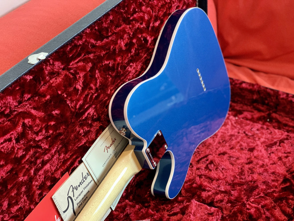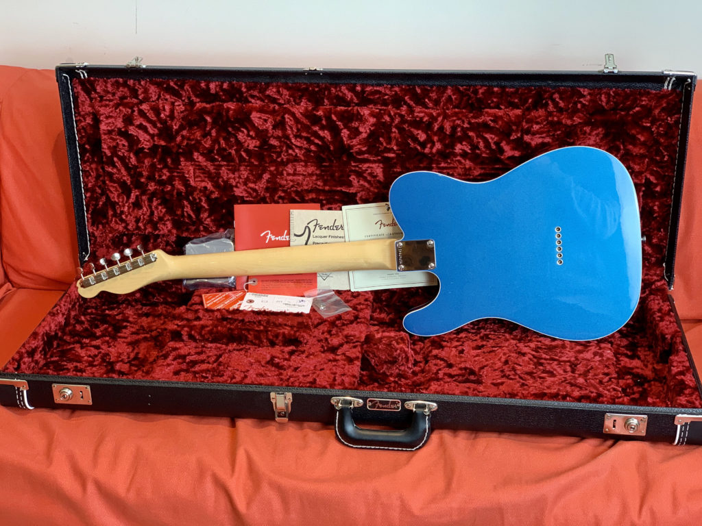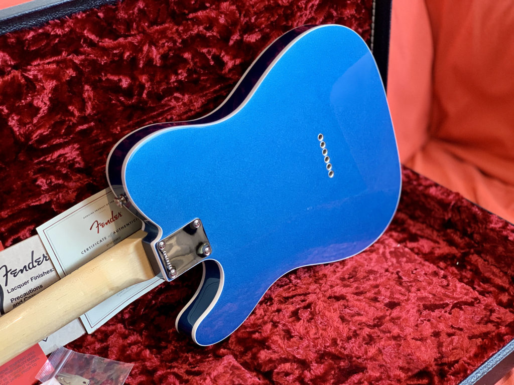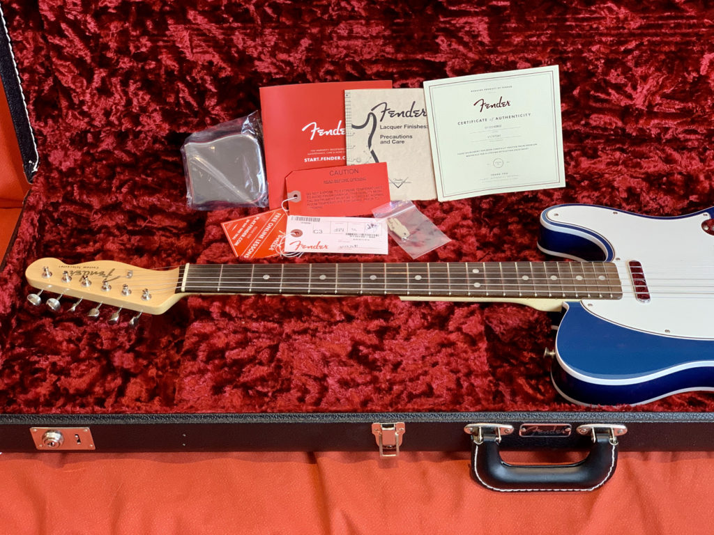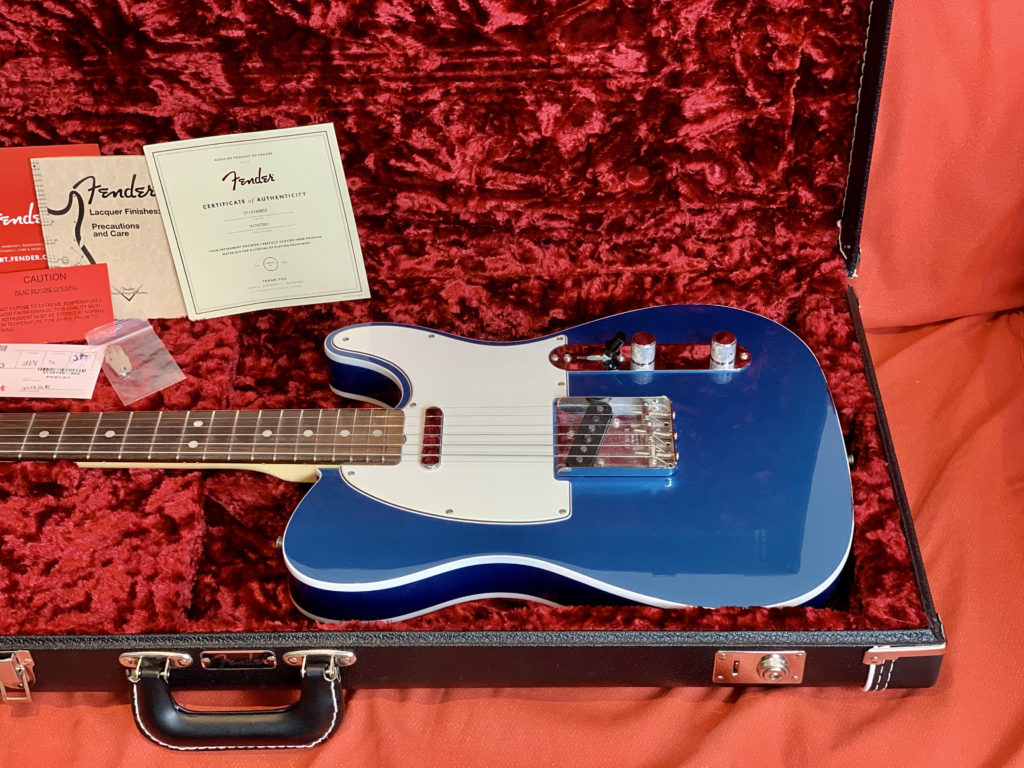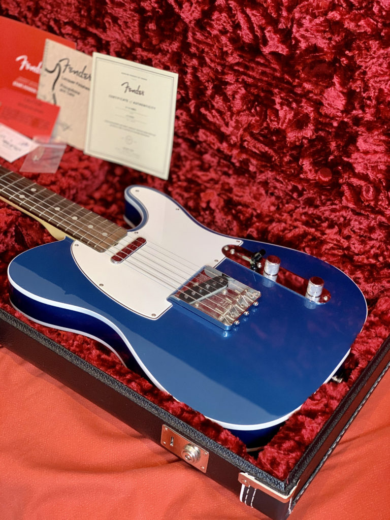 Hey Telecaster fans, look at this killer Fender American Original ’60s Telecaster in this gorgeous Lake Placid Blue NITRO (!!!) finish! This American Original (ex American Vintage Reissue – AVRI) series guitar has a double bound (!!!) alder body with a smooth ’60s maple neck and a round-lam (!!!) rosewood fingerboard. These are amazing features! Very period correct!