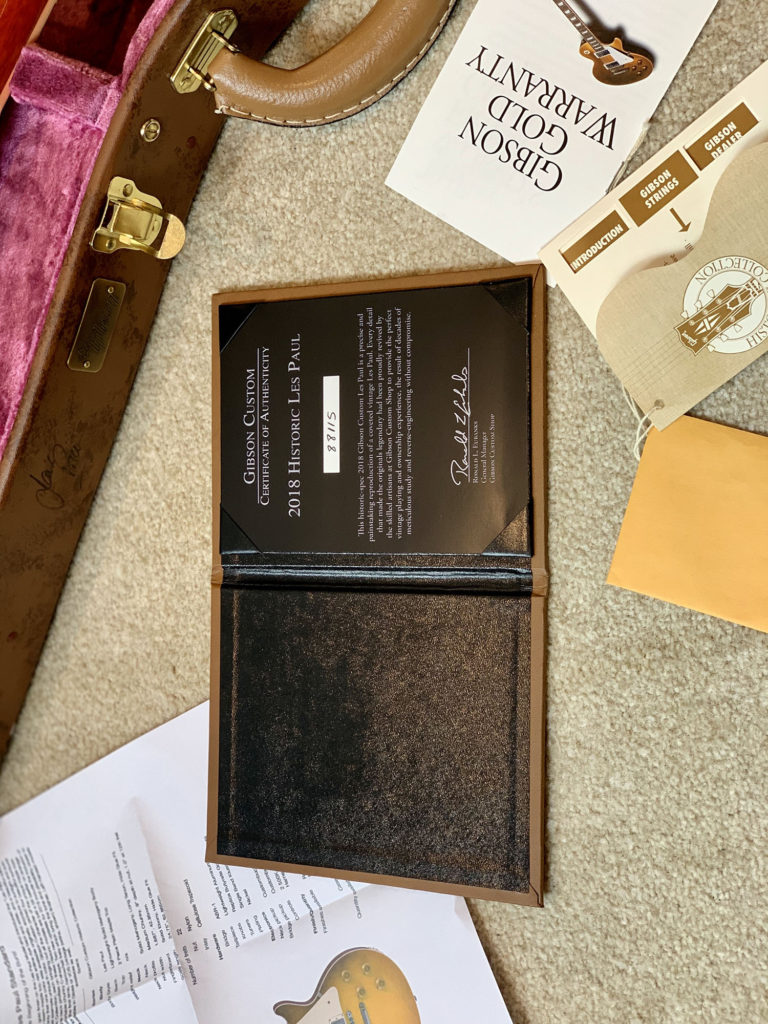 This is another fantastic deal: this is an ABSOLUTE MINT GUITAR and it comes with all its papers, hang tags, certificate and immaculate original hard case! This is the 2018 model 58 (R8) Reissue! Seriously! As it’s certificate says: “it’s completely hand built by some of the finest luthiers on the planet”
